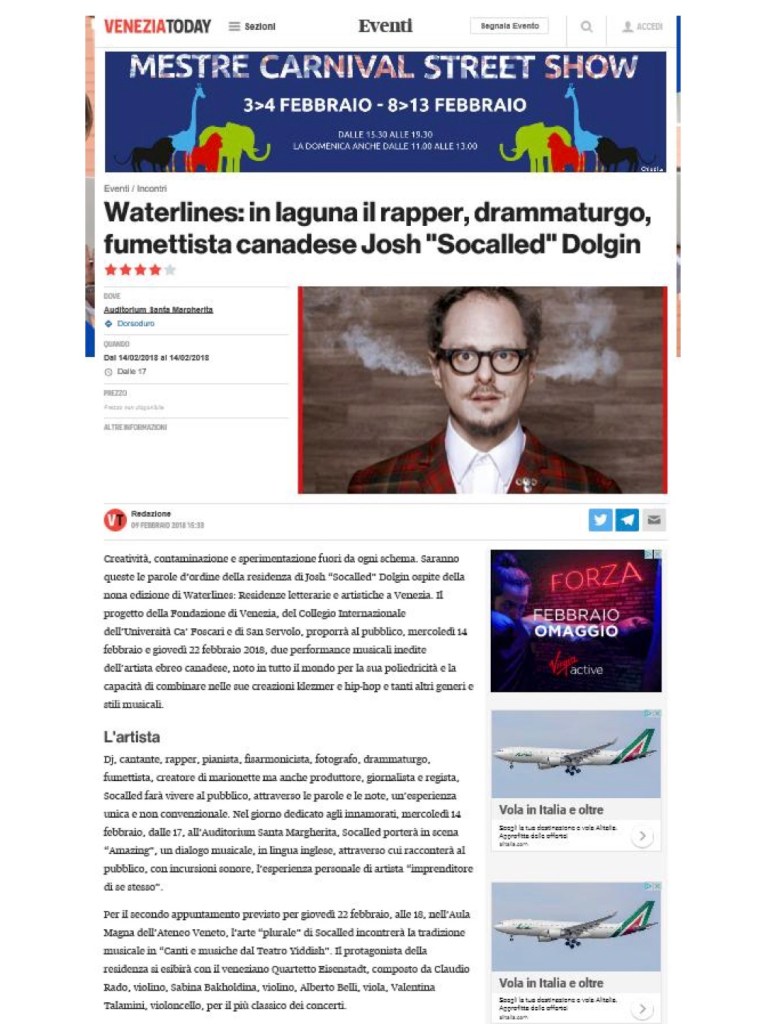Josh Socalled Dolgin lors de sa résidence à Venise pour son projet Waterlines, during his residence in Venice for his project Waterlines – Photographie © Marc Gibert / adecom.ca
