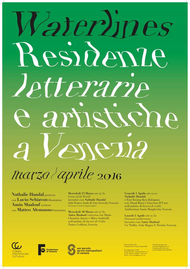Riflessi (Reflections) is a result of the collaboration between Nathalie Handal and the Venetian illustrator and graphic designer, Lucio Schiavon. Riflessi mixes some of the poems written by Handal, during her residence in Venice, with Schiavon drawings. /Riflessi è il risultato della collaborazione tra Nathalie Handal e l’illustratore e graphic designer veneziano Lucio Schiavon. Riflessi riunisce alcune poesie scritte da Handal, durante la sua residenza, con i disegni di Schiavon.